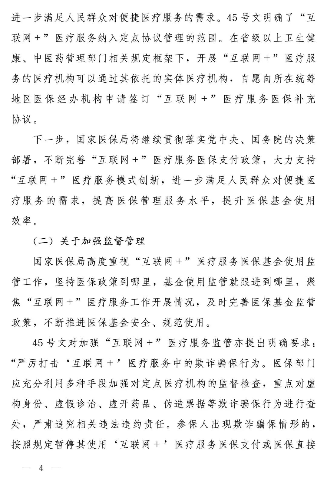 在监督管理方面,国家医保局和国家卫生健康委将共同做好“互联网+”医疗服务的监督管理,加强政策研究,强化大数据分析应用,保障“互联网+”医疗服务质量,规范医保基金使用。